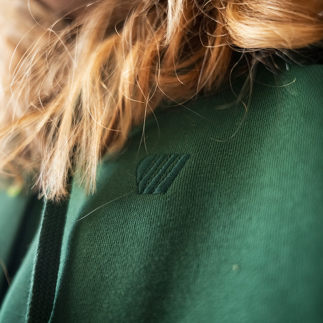 Sweat à capuche vert FEROCE en coton biologique.